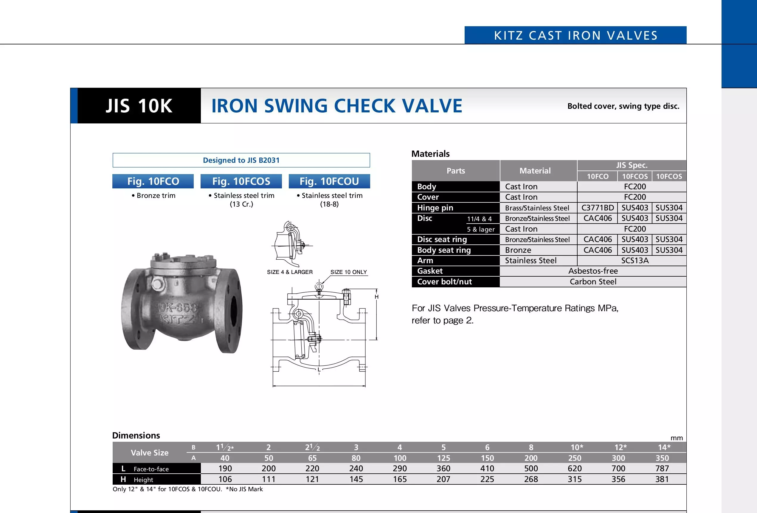 KITZ cung cấp nhiều dòng van 1 chiều khác nhau như swing check (đĩa lật), lift check (đĩa nâng), wafer check (mỏng, gọn) với các vật liệu gang, inox, thép carbon, đồng. Người dùng có thể chọn lựa phù hợp với từng môi trường làm việc cụ thể.